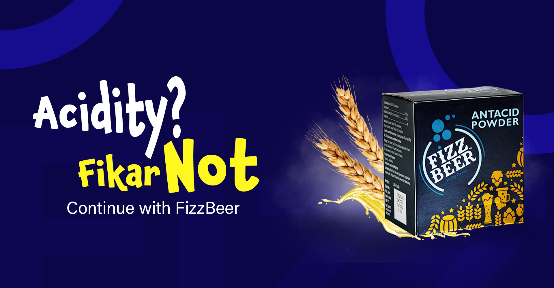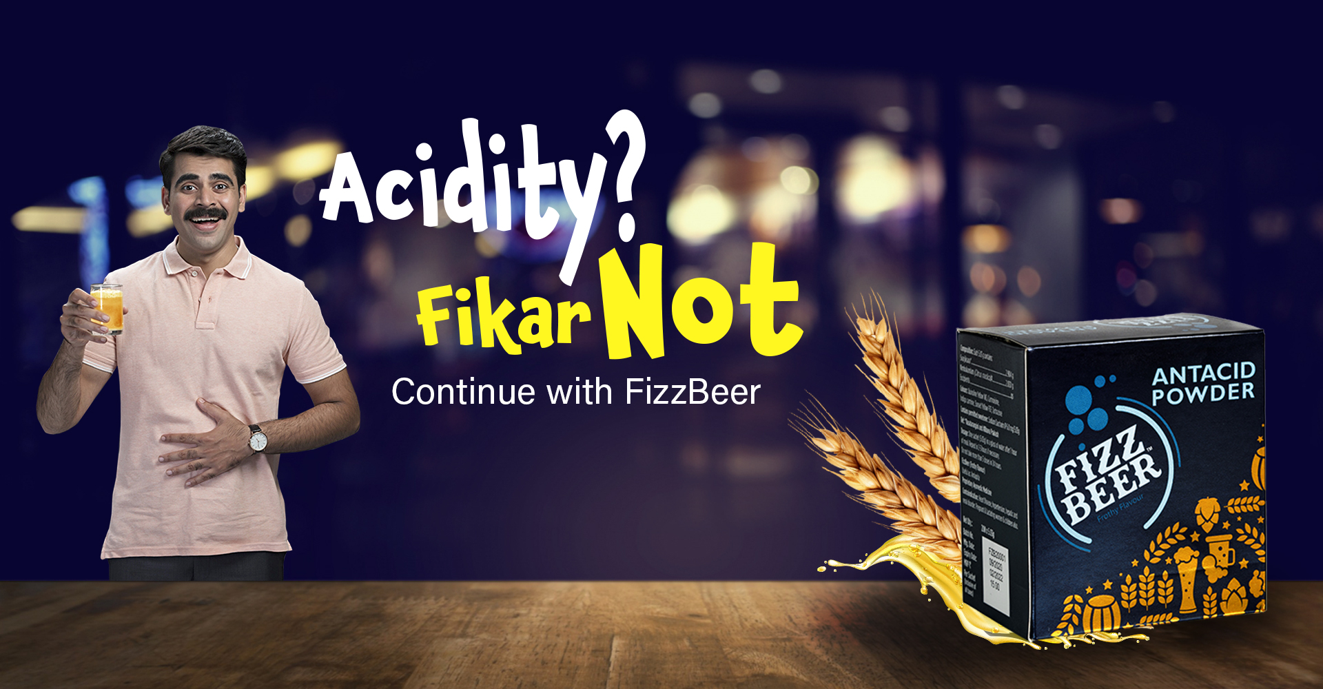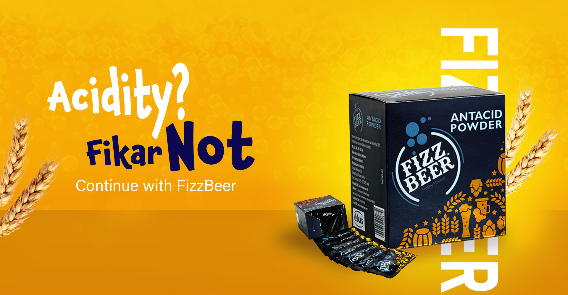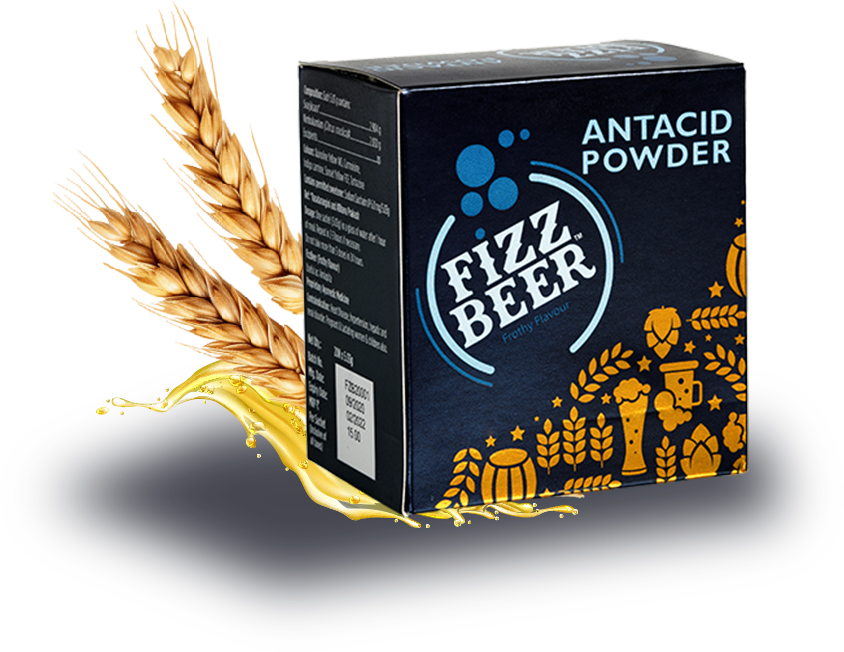 FizzBeer is a non-alcoholic effervescent antacid powder for instant relief from hyperacidity, heartburn, gas, bloating and indigestion.